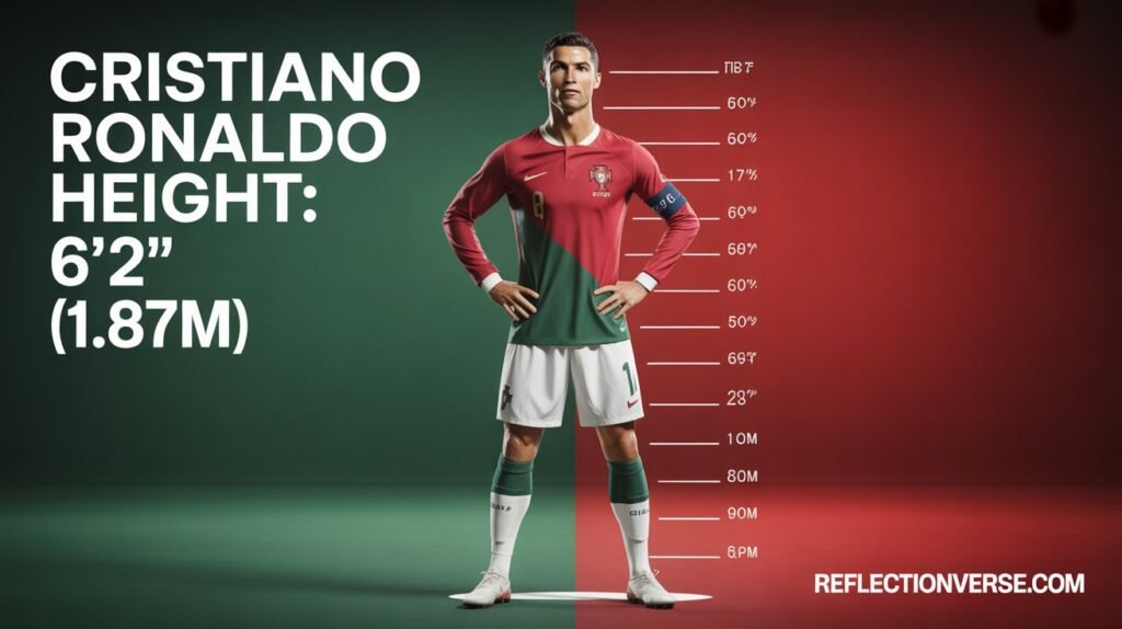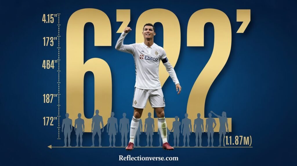 However, height measurements in sports can sometimes vary slightly depending on the source. Some listings show cristiano ronaldo height at 185 cm, while others confirm 187 cm. These minor discrepancies are common in sports documentation. The generally accepted figure remains around 6’2″.