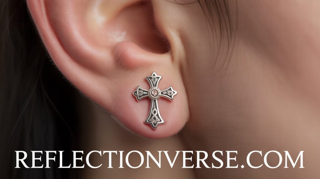 1. What exactly is a magic cross piercing? It is a curated arrangement of four ear piercings placed in a cross formation. The piercings are positioned so they visually connect to create one unified, cross-shaped design across the ear.