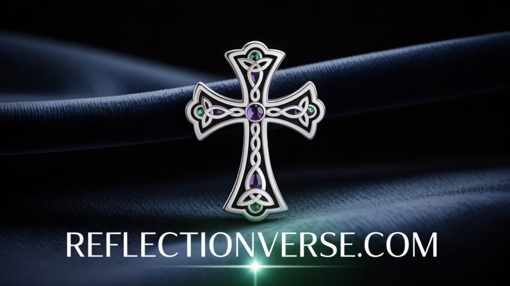 Cross-shaped centerpiece: Use an actual cross charm or cross-cut gem at the anchor point of the arrangement to reinforce the theme explicitly.
