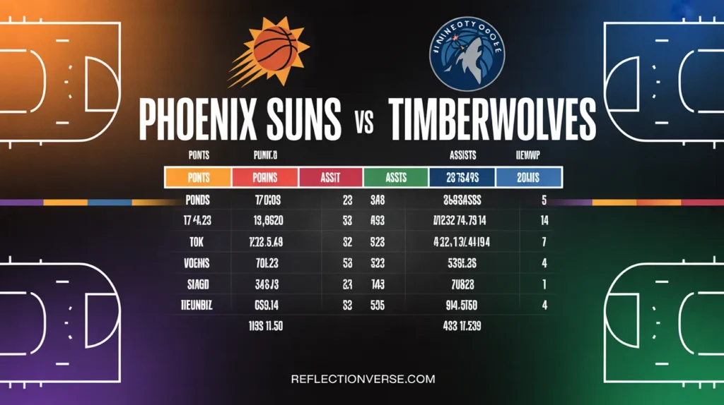 The Western Conference has become incredibly competitive, and every matchup between these teams matters. You’ll see star power colliding with emerging talent, strategic coaching decisions playing out in real-time, and momentum shifts that can change everything in seconds. In this article, we’ll break down the phoenix suns vs timberwolves match player stats in detail, showing you who dominated, who struggled, and what the numbers reveal about both teams’ strengths and weaknesses.